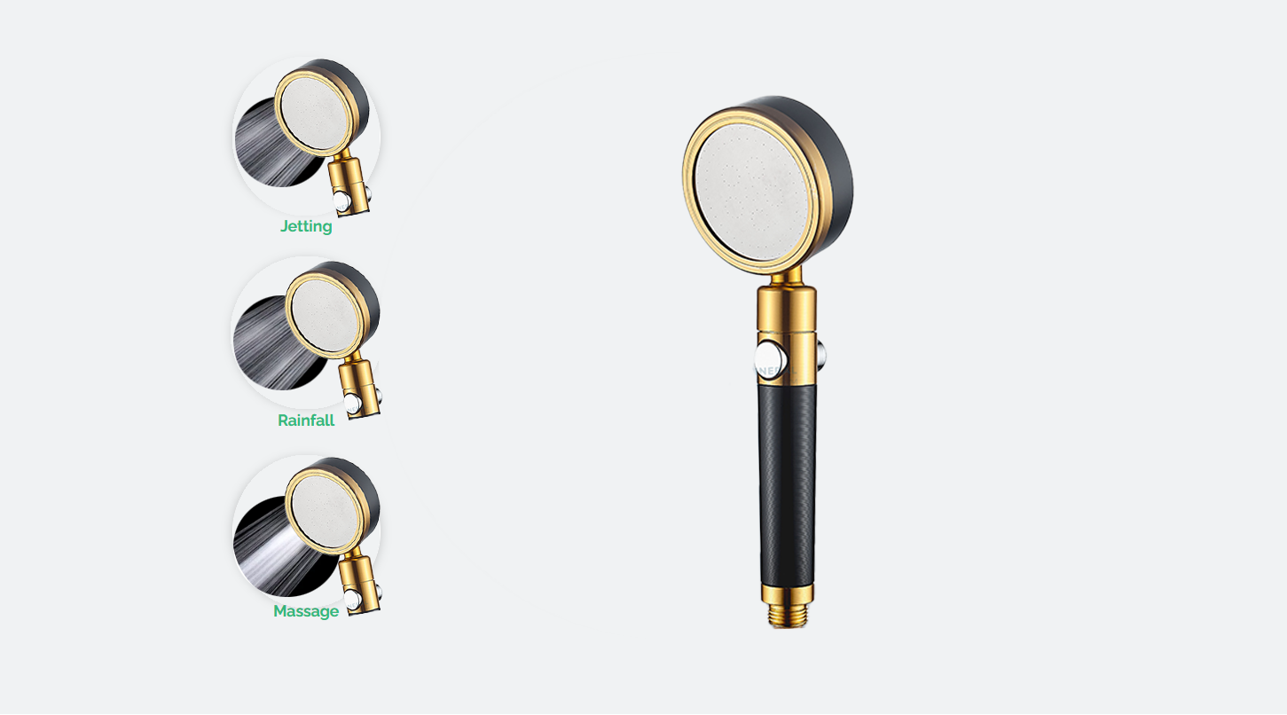 Luxurious Black and Gold Shower Head, High-Pressure Water