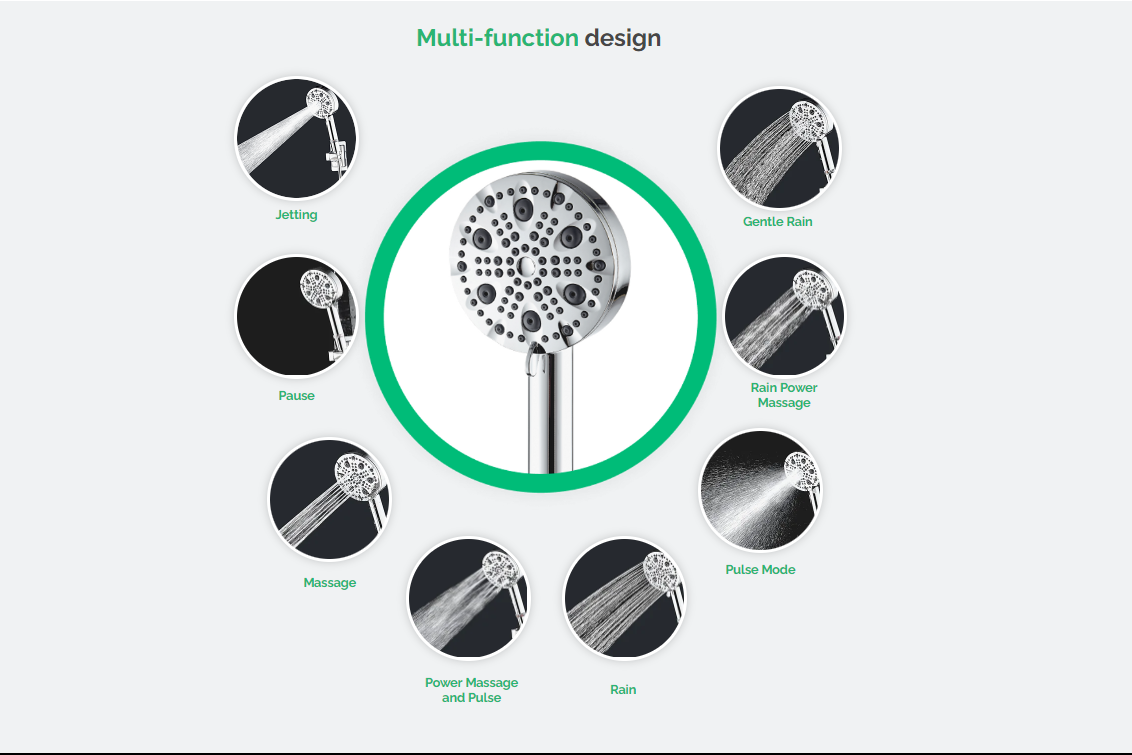 You can switch between the 9 spray modes with ease—just rotate the shower panel to find your preferred setting, from a gentle mist to a powerful jet.