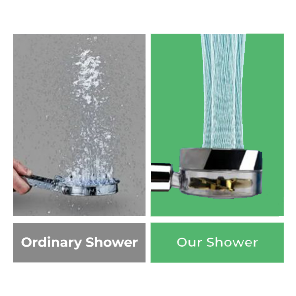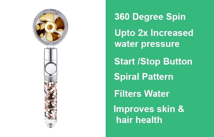 The TurboFan Shower Head utilizes a turbofan design which creates a beautiful pattern of the flowing water and the golden coloured fan looks beautiful as well. The showerhead is water-saving and has laser-cut micro-holes that boost water velocity, providing up to twice the water pressure for an enhanced showering experience.