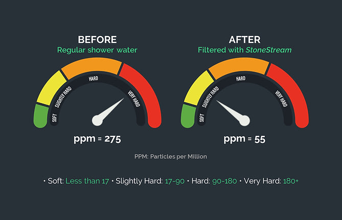 StoneStream softens hard water and reduces limescale even in high concentration areas of chalk and calcium.
